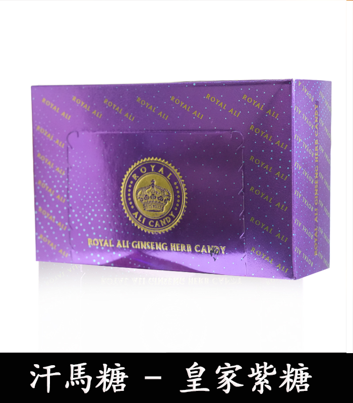 皇家紫糖 Royal Ali Candy 汗馬糖主要功效是補益陽氣,養筋健骨,補氣養血,緩解血虛型便秘。汗馬精力糖由於快速補充人體細胞營養,延緩老化進程非常有效,數年來已成為運動員首選的細胞營養產品。以無添加無危害無副作用的效果,受到了消費者的喜歡,成為男性壯陽的首選藥物,最為主要的是服用汗馬糖之後還能夠修復身體受損的各種組織,改善男性機能的提升,對男性精力的提升,還有滋養內臟是非常具有保養效果的。