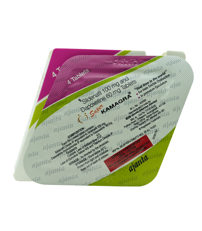 雙效威而鋼Kamagra用於治療勃起功能障礙,並且解决了與男性效能降低有關的許多健康問題。雙效威而鋼Kamagra的藥物效果好於許多昂貴的品牌藥物,因為它含有相同的成分,並以便宜的價格幫助盡可能多的人。建議患者在24小時內服用最多1粒藥丸,時間為60分鐘至90分鐘,然後性交才能進行性行為。該片劑的劑量為100毫克西地那非聯合60毫克達泊西汀,按照醫生在處方規定的說明書,口服一杯普通水。對於患有腎病,心臟病,血壓和心血管危險史的患者,嚴禁使用該藥。還建議您不要在任何一個時間使用多於一粒,而且每天不要超過一次,以避免過量的任何副作用。它含有西地那非檸檬酸鹽和達泊西汀的組合,這是眾所周知的解决所有年齡組男性性問題的。這是由著名的藥店公司Ajanta Pharma製造的一種通用藥物。