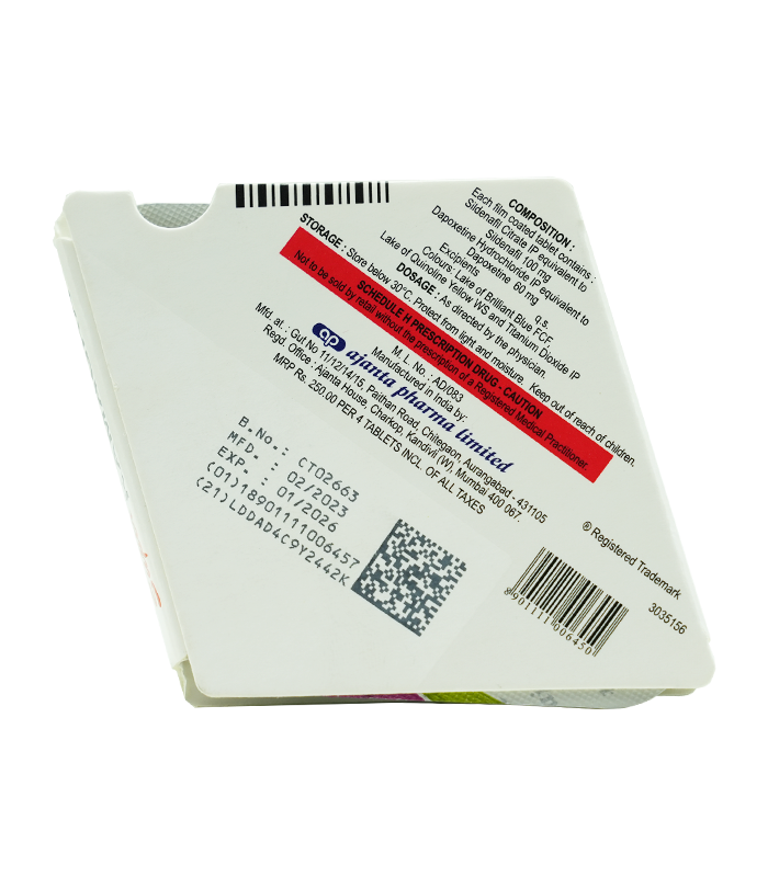 【活性成分】: 西地那非100mg、達泊西汀60mg