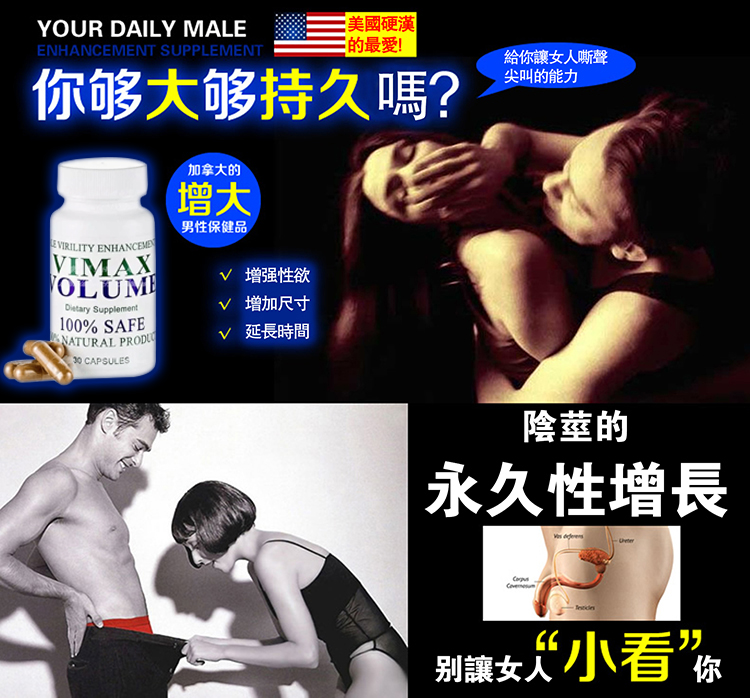 Vimax增大丸在全球已有六年的銷售歷史,銷量超過2,000,000罐,幾十萬人受益,增加了男根的長度和直徑,提高了性能力、欲望,預防早泄,增強勃起時間,增加性高潮快感,並且使身體精力充沛。