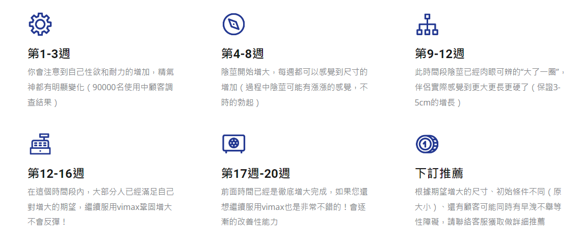 - 第17週-20週 前面時間已經是徹底增大完成,如果您還想繼續服用vimax也是非常不錯的!會逐漸的改善性能力